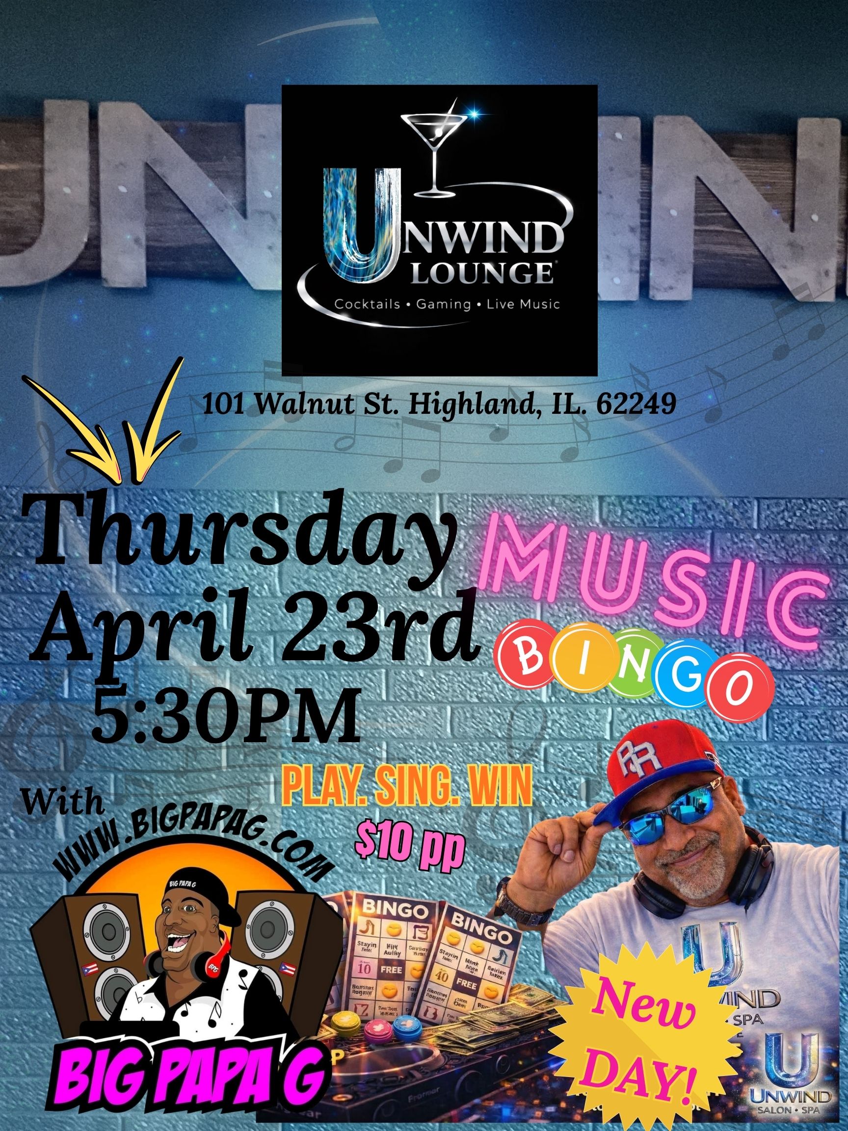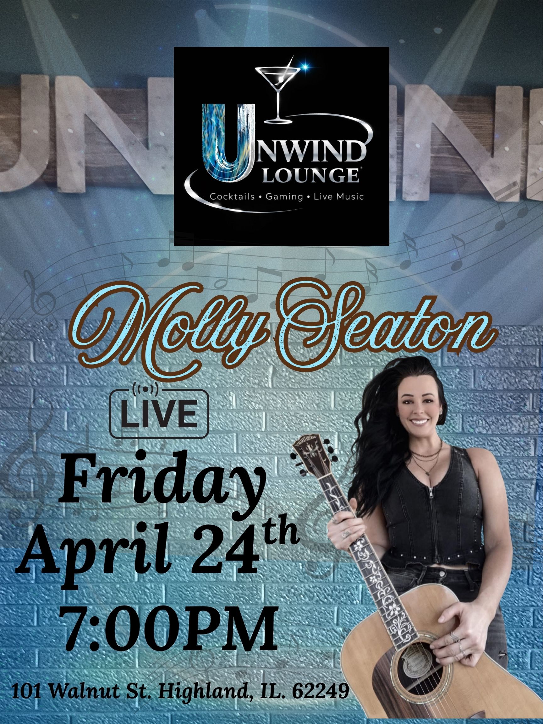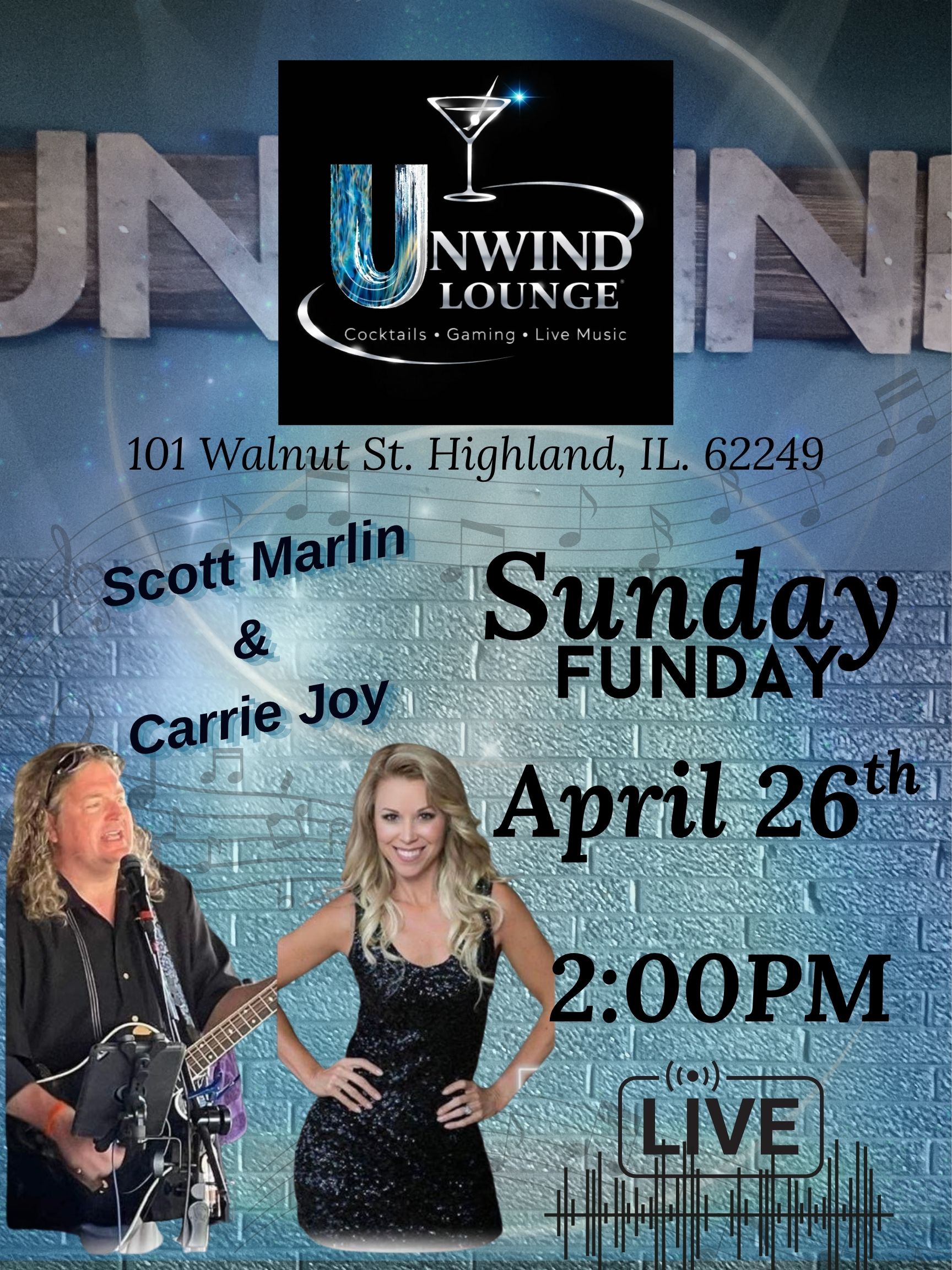 Join us at Unwind Lounge for Live Music by local Highlander Brandon Munie. Let's have a Sunday Funday on the patio (weather permitting) If raining he will be inside the lounge area playing for you!